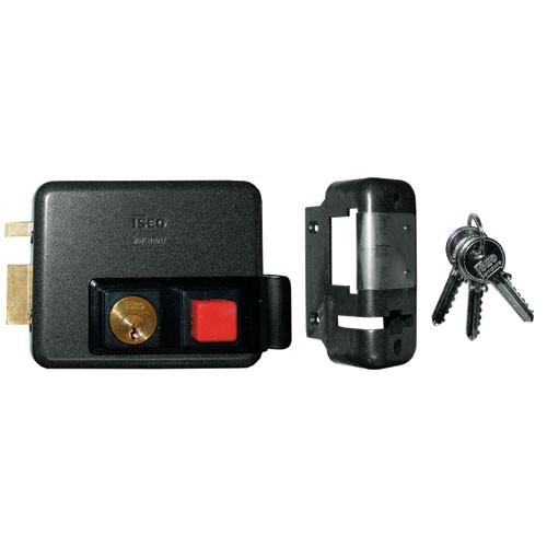 Накладной, ключ+кн., отк. дв. внутрь, правый, цилиндр + три ключа, кнопка выхода, блокируемая ключом в положении "открыто", "закрыто", 106х130х40 мм, 12 В/1,25 A