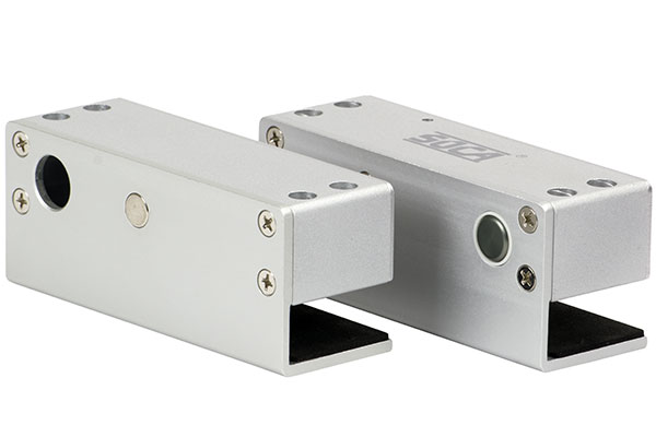 Накладной соленоидный электромеханический замок для стеклянных дверей (толщина 9мм ~ 12мм). НО, регулируемое время задержки 0 и 3 сек. Датчик положения двери.