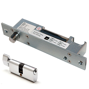Врезной соленоидный электромеханический замок, нормально-закрытый, с личинкой (3 ключа), сила удержания 1200 кг, датчики положения двери и положения замка НО и НЗ, регулируемое время закрытия 0/3/5/9 сек., функция "дозакрытие", 12/24 В, 950/475 мA, 200х32,5 мм