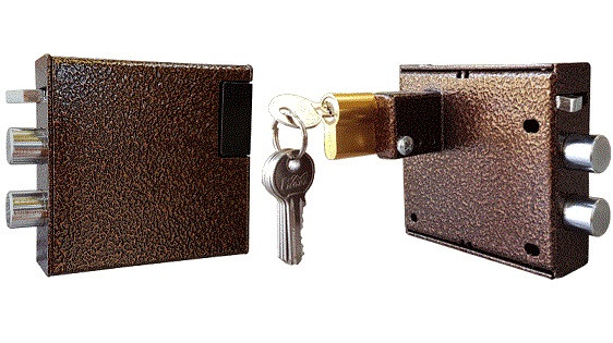 Накладной, универсальный, скрытый крепеж, 12 В/0,8 А, изнутри механическая кнопка, снаружи ключ, диаметр засовов 18 мм, ход засовов 17 мм, размер 110х92х33 мм, -40...+60°С